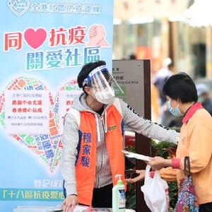 “近日我们与特区政府民政事务局在香港大球场交接了一大批中央援港物资,这些物资是社区抗疫的‘及时雨’,我们立刻利用义工网络在全港十八区指定派发点进行发放。”“全港社区抗疫连线”秘书长徐海山介绍,该组织近期已组建“十八区抗疫爱心队”,招募到逾6000名志愿者。