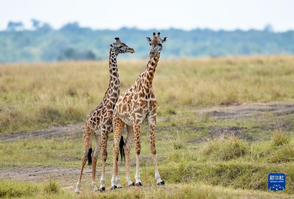 这是2021年8月30日在肯尼亚马赛马拉国家保护区拍摄的长颈鹿。