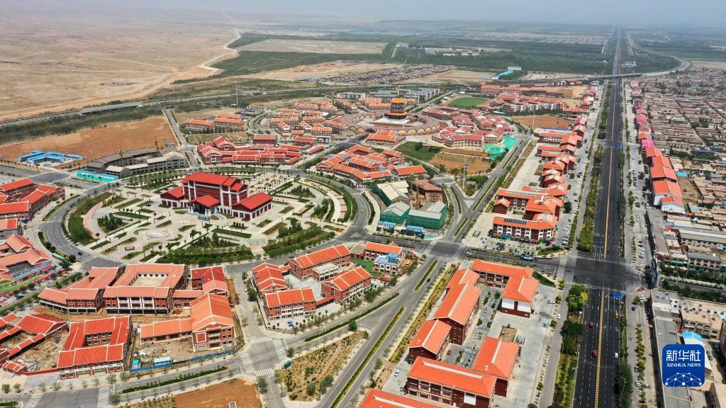 宁夏闽宁镇全景(2021年7月15日摄,无人机照片)。