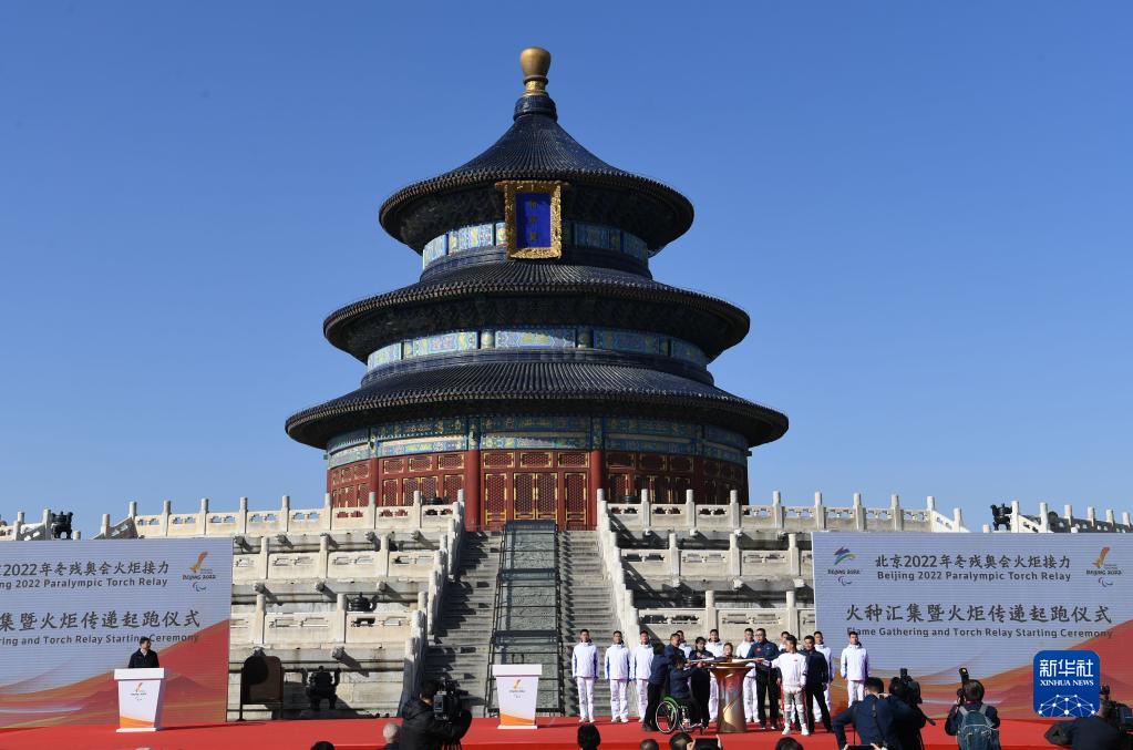 当日,北京2022年冬残奥会火种汇集仪式在天坛公园举行。在北京、延庆、张家口三个赛区采集的8个火种,连同在英国曼德维尔采集的火种,共9个火种汇聚生成北京2022年冬残奥会官方火种。仪式后进行了以“九天之火”为主题的天坛公园火炬传递。