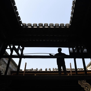 位于安徽省宣城市泾县云岭镇章渡村的章渡老街历史上曾是繁华的水陆码头,临江建有皖南独特建筑“吊栋阁”。由于年久失修,“吊栋阁”及老街上的很多建筑已经破败。2021年,当地启动章渡老街的保护修复,对“吊栋阁”周边区域实施保护及修缮,打造文化多元的全新“文旅街区”。
