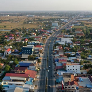 这是3月1日在柬埔寨南部茶胶省拍摄的中国援柬3号公路改扩建项目(无人机照片)。