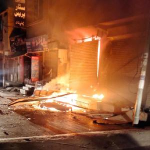 3月2日,在巴基斯坦俾路支省首府奎达市,爆炸现场燃起大火。