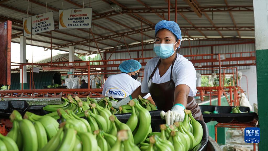 这是2021年10月28日,工人在厄瓜多尔洛斯里奥斯省太平洋香蕉王公司的一处种植基地处理待出口的香蕉。