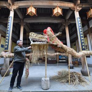 这是3月2日拍摄的黄山市徽州区蜀源村“舞草龙”活动。