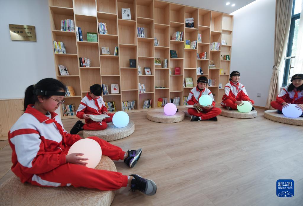 3月3日,在嘉兴市儿童青少年心理健康服务总站,学生们体验“脑波球”,借助脑电生物反馈技术,在彩色LED灯的色彩变化中直观的感受自己的情绪变化。