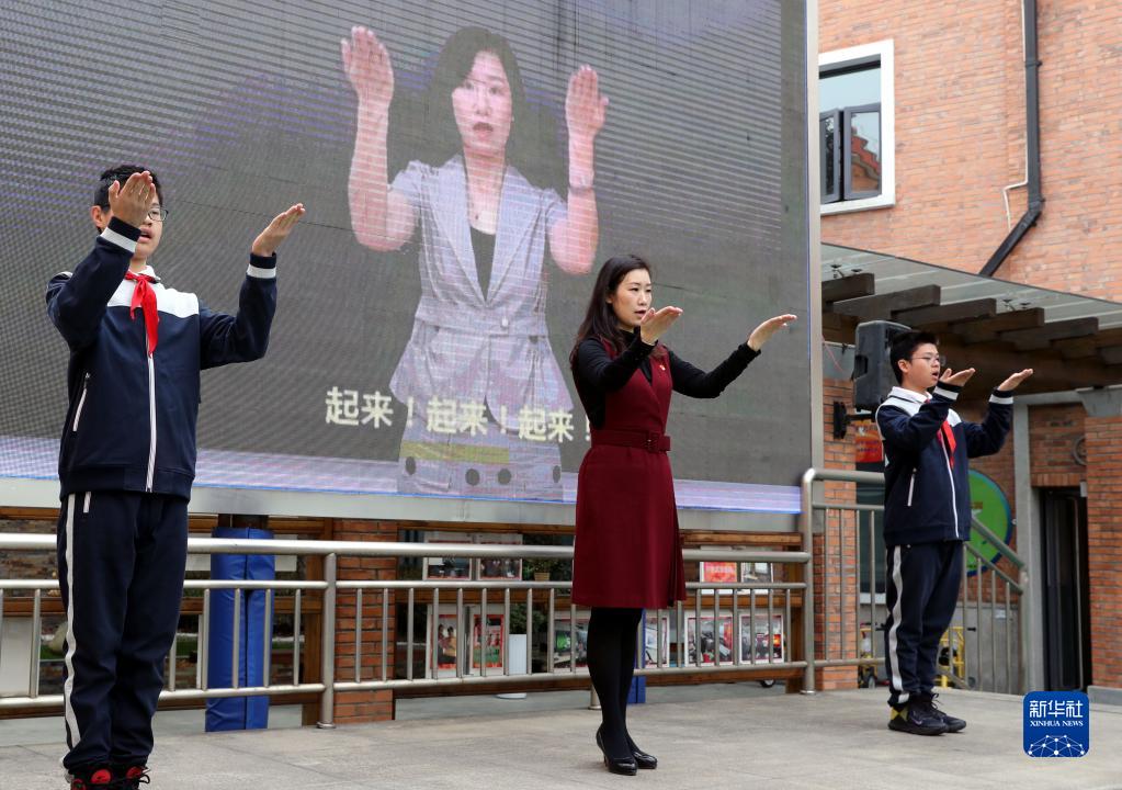 3月3日,上海市第四聋校的师生们“唱响”手语国歌。