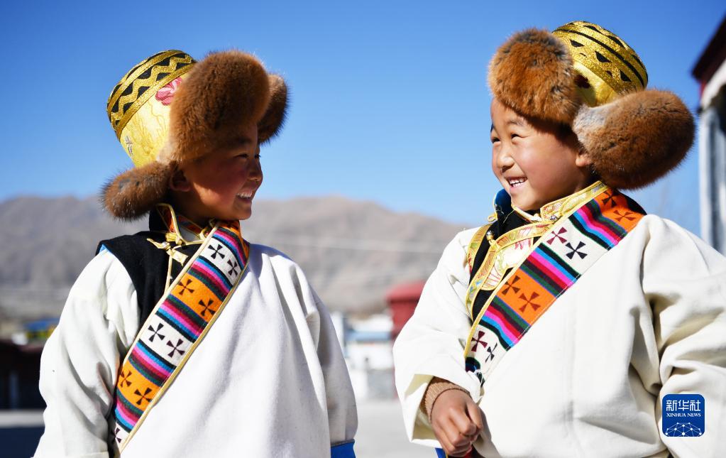 3月3日,西藏山南市贡嘎县岗堆镇群众身着藏装欢度藏历水虎新年。