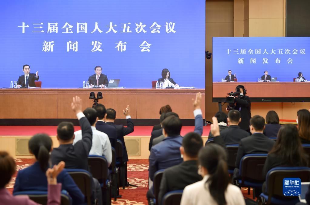 3月4日,十三届全国人大五次会议新闻发布会在北京人民大会堂新闻发布厅举行,由大会发言人张业遂就大会议程和人大工作相关问题回答中外记者提问。为有效防控疫情,共同维护公共卫生与健康,新闻发布会采用网络视频形式进行。