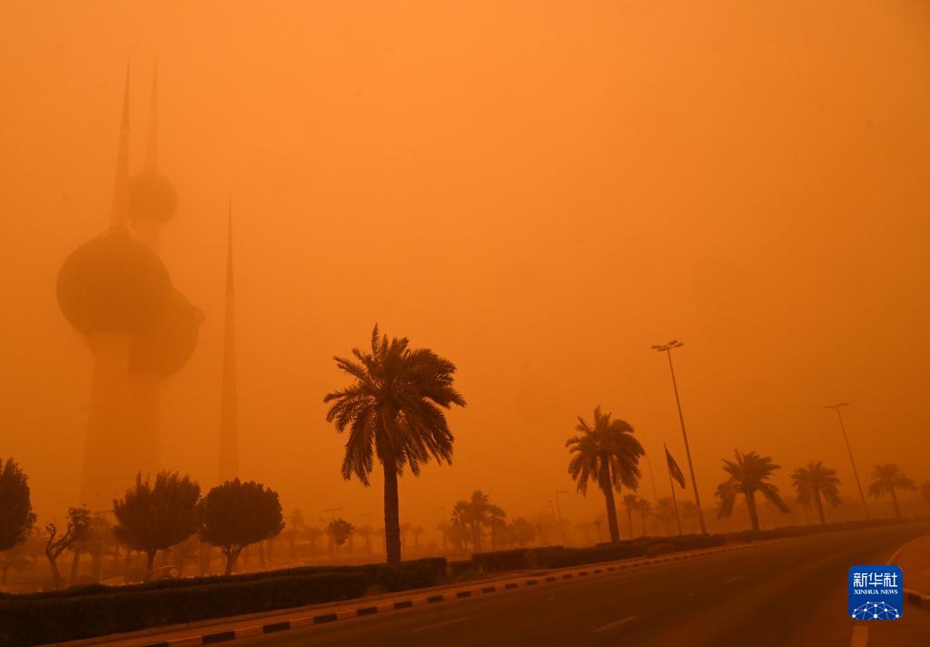 3月4日,在科威特首都科威特城,建筑物笼罩在沙尘中。