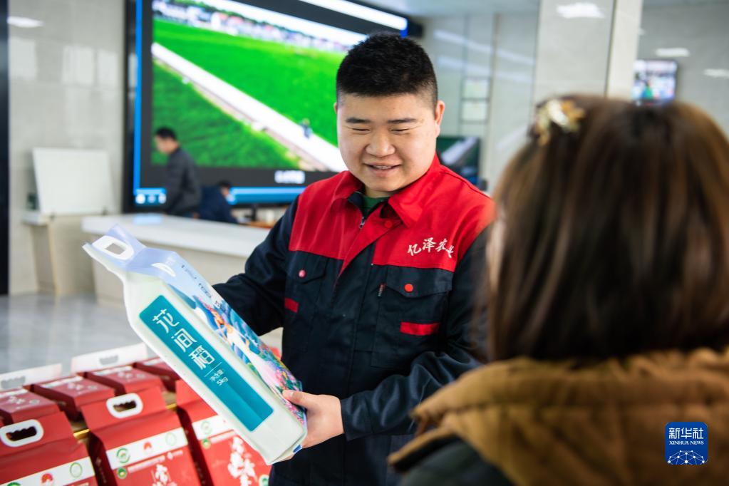 2月22日,在湖南省常德市鼎城区谢家铺镇亿泽生态农业科技有限公司,陈帅宇向来访人员介绍产品。