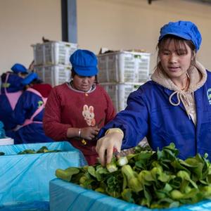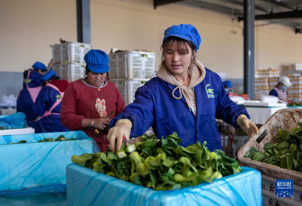 3月3日,脱贫群众在云南省曲靖市会泽县一蔬菜冷链企业分拣蔬菜。
