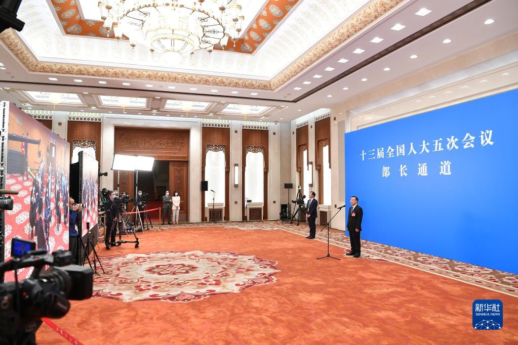 3月5日,第十三届全国人民代表大会第五次会议举行首场“部长通道”采访活动。这是农业农村部部长唐仁健通过网络视频方式接受采访。