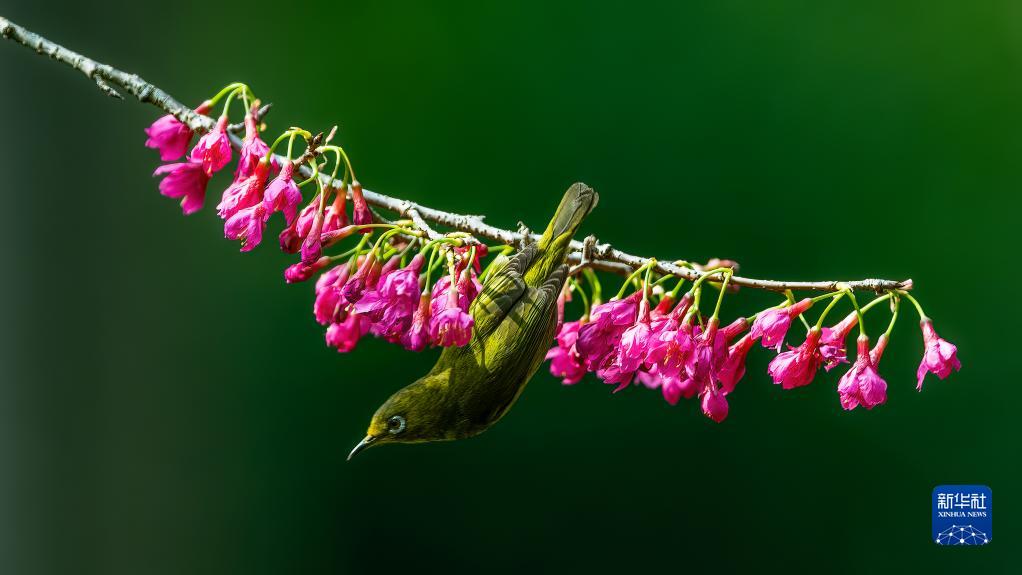 绣眼戏花迎春来