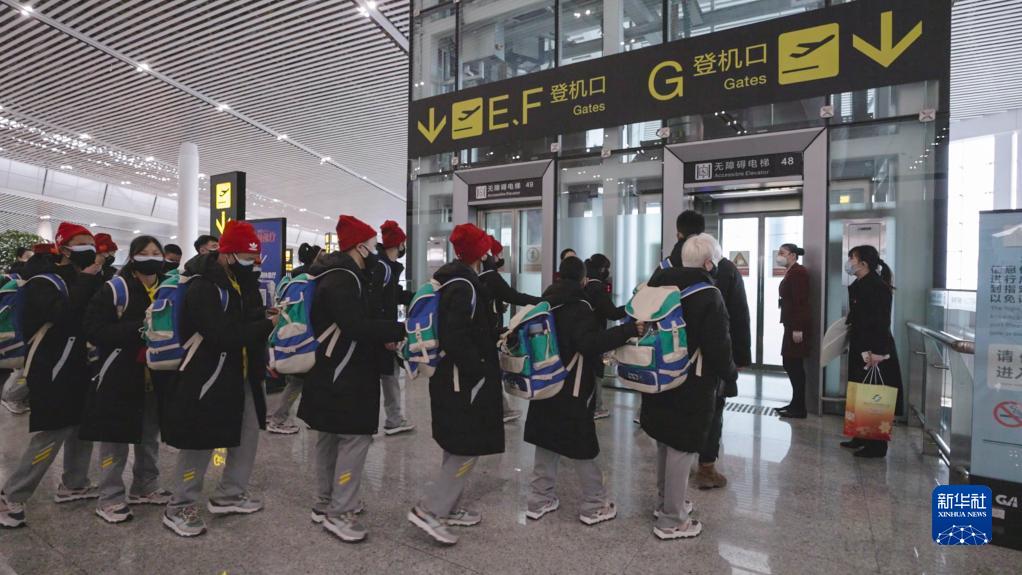 图为在重庆江北机场,重庆市特殊教育中心扬帆管乐团参演团队准备乘机前往北京(2月8日摄)。