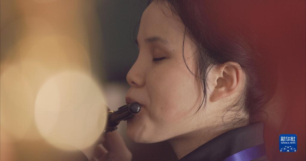 图为重庆市特殊教育中心扬帆管乐团长笛手田秀云在北京的排练场馆内进行排练(2月16日摄)。