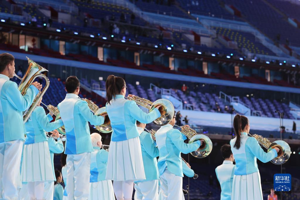 图为重庆市特殊教育中心扬帆管乐团参演团队在国家体育场“鸟巢”内彩排(3月2日摄)。
