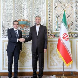3月5日,伊朗外长阿卜杜拉希扬(右)在德黑兰会见国际原子能机构总干事格罗西。