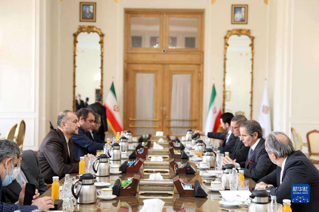 3月5日,伊朗外长阿卜杜拉希扬(左三)在德黑兰会见国际原子能机构总干事格罗西(右二)。
