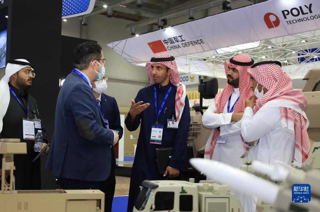 3月6日,在沙特阿拉伯首都利雅得举行的世界防务展上,中国企业员工向参观者介绍参展装备。