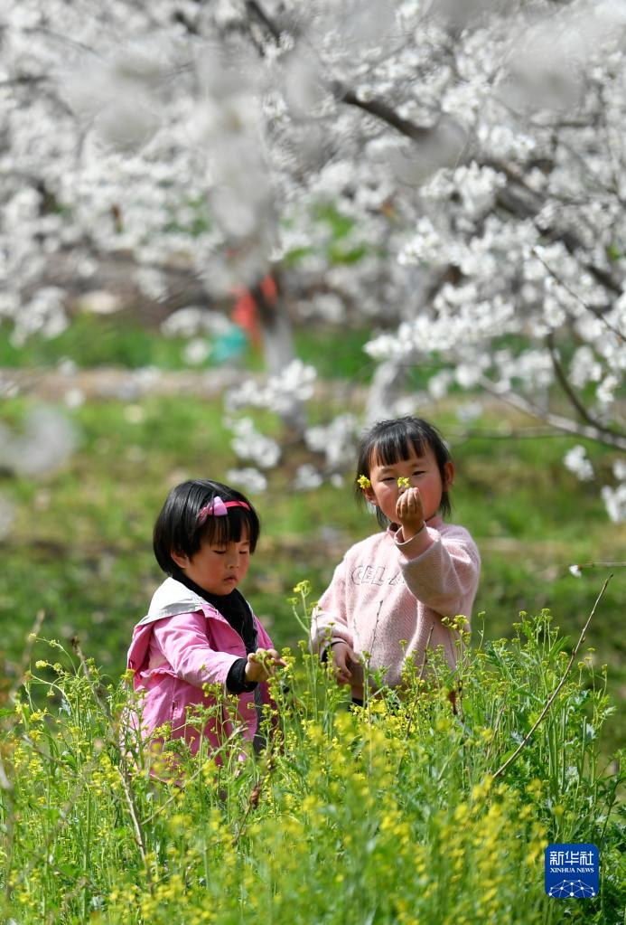 3月6日,小朋友在甘肃省陇南市武都区城关镇石家庄村的种植园内游玩。