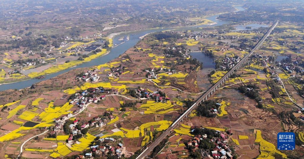 3月7日,动车组列车在成渝高铁四川内江段行驶。