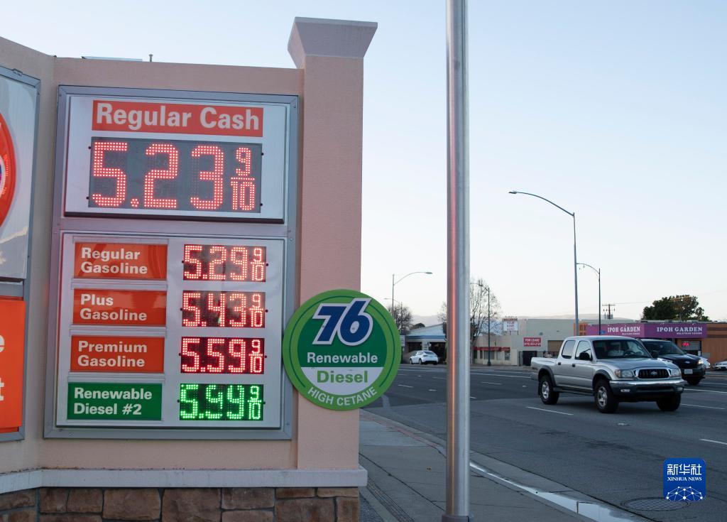 3月6日,车辆经过美国旧金山湾区米尔布雷一家加油站。