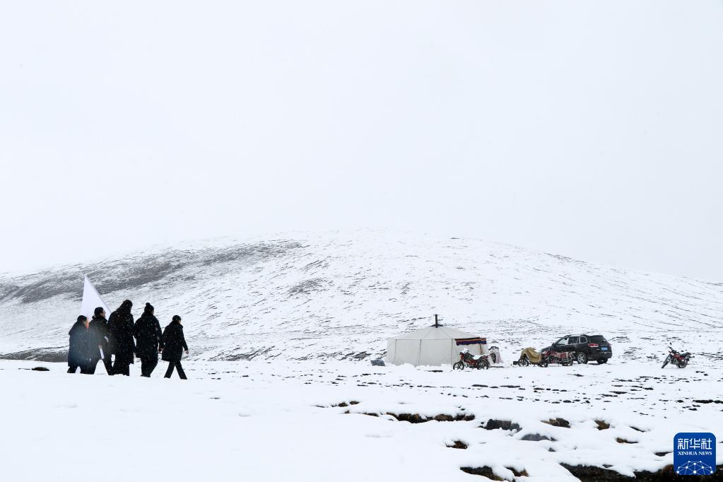“正义雪莲”女子审判团队成员冒雪深入牧区,为牧民提供法律服务(2021年5月16日摄)。