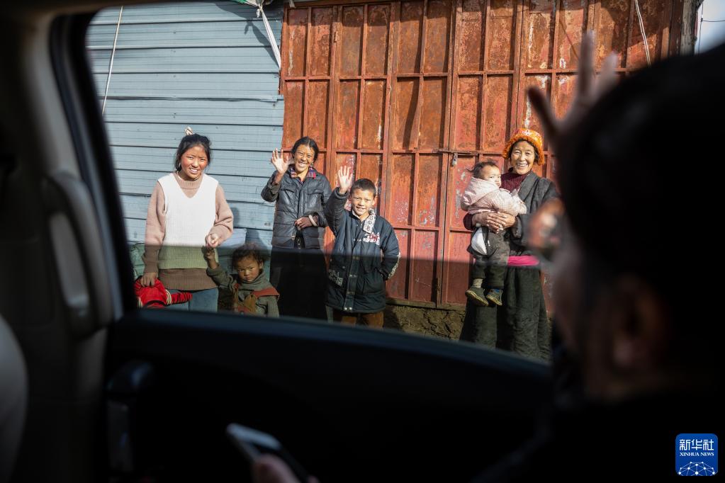 “正义雪莲”女子审判团队成员到当事人家中回访,群众向他们挥手致意(1月11日摄)。