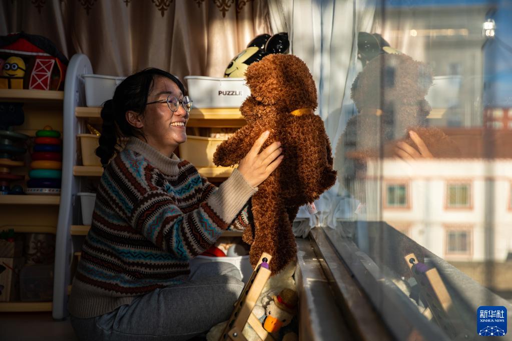 在石渠县家中,法官泽仁曲西在整理儿子的玩具(1月11日摄)。目前,泽仁曲西的儿子跟着外婆在成都,丈夫在300多公里外的德格县工作,一家人分居三地,相聚时间寥寥。