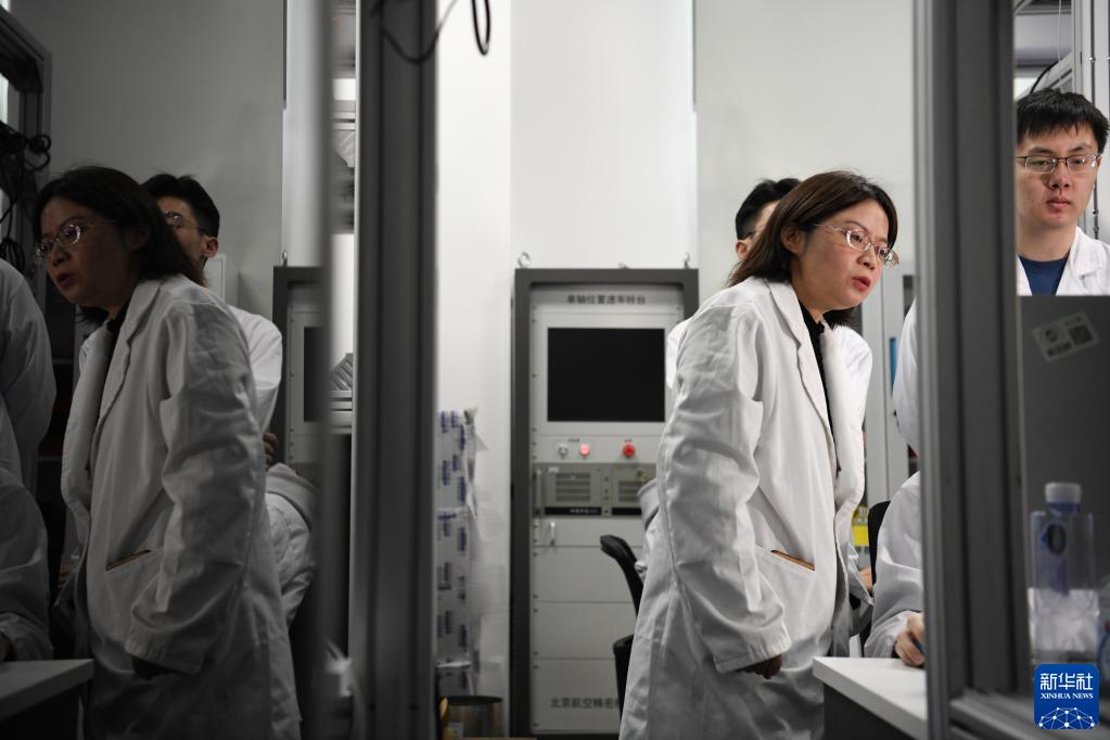 3月6日,在中国科学技术大学内,彭新华教授与团队成员在中国科学院微观磁共振重点实验室内讨论。