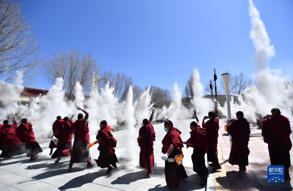 当日,西藏扎什伦布寺举行大经杆经幡更换仪式。僧人把写有祈愿的经幡系在经幡柱上立经杆,祈祷新的一年人畜平安、风调雨顺。扎什伦布寺每年在藏历新年初五举行此仪式。