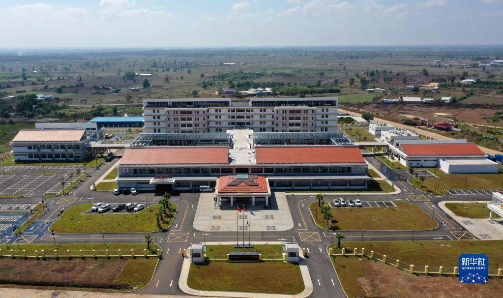 这是2月17日在柬埔寨特本克蒙省新区拍摄的中国援柬埔寨特本克蒙省医院(无人机照片)。