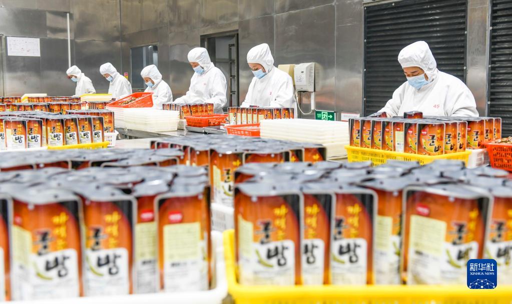 3月7日,工人在河北省遵化市苏家洼镇一家栗子加工企业车间包装出口栗子。