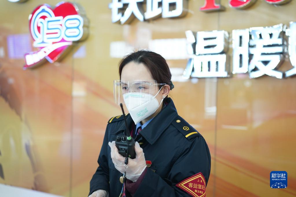 3月7日,在南京南站,“158”雷锋服务站工作人员许慧玲在工作。