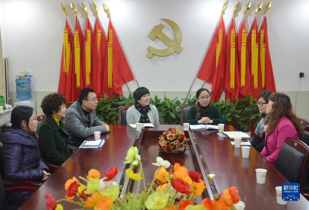 刘希娅(左四)在重庆市九龙坡区石坪桥小学调研(2014年2月24日摄)。