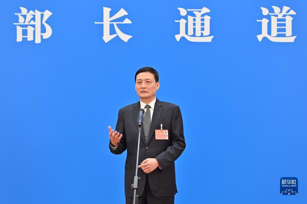 3月8日,第十三届全国人民代表大会第五次会议举行第二场“部长通道”采访活动。这是工业和信息化部部长肖亚庆通过网络视频方式接受采访。