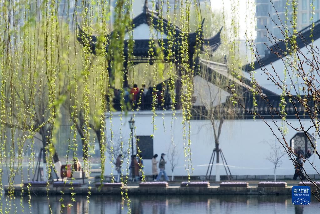 这是3月8日在南京莫愁湖公园拍摄的湖边垂柳。