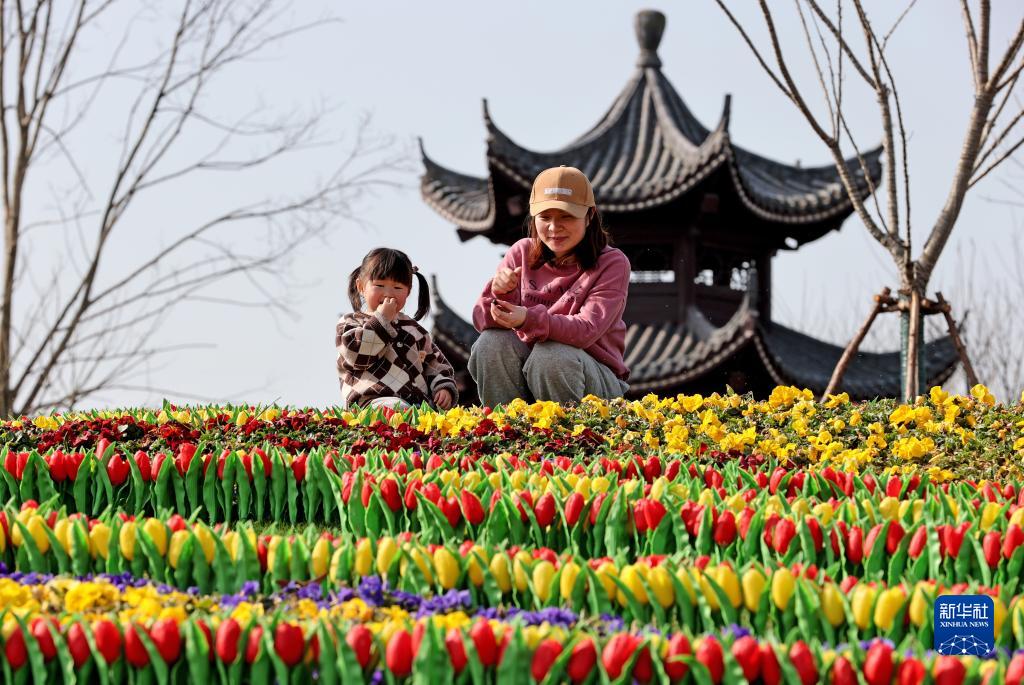 3月8日,市民在安徽省全椒县生园踏青游玩。