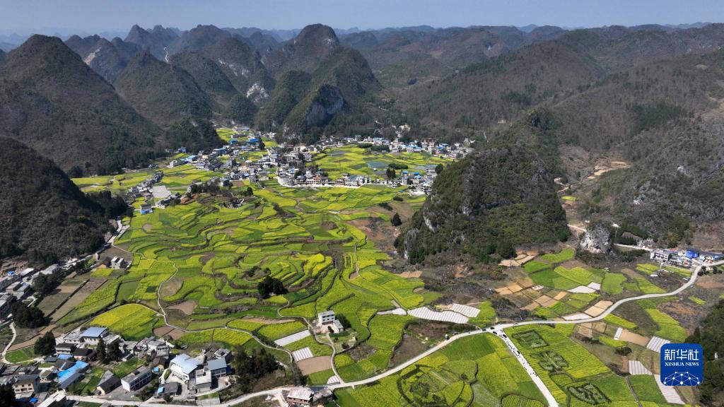 3月8日拍摄的贵州省黔南布依族苗族自治州罗甸县边阳镇油海村的油菜花海(无人机照片)。