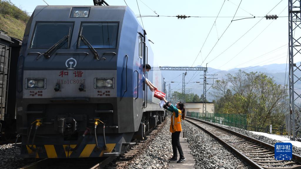 3月7日,在百色车务段八渡站,一名布依族厨娘给火车司机送午餐。