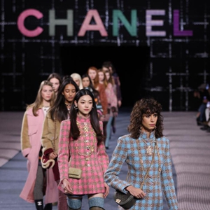 3月8日,模特在法国巴黎成衣展上展示法国品牌香奈儿2022秋冬新品成衣。