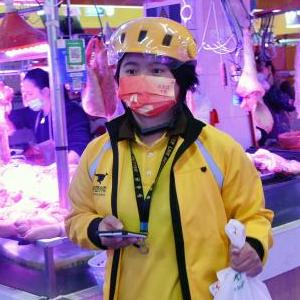 3月8日,蒋小溪在深圳市宝安区沙井街道一菜市场送单。