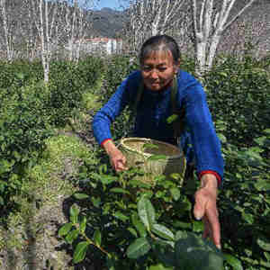 近日天气持续晴好,在诸暨市赵家镇的茶园里,茶农们开始采摘今年的首批早春茶“乌牛早”,首批春茶经过采摘和炒制就会上市销售。由于今年雨水天气较多,“乌牛早”的开采时间比去年推迟了约十天。