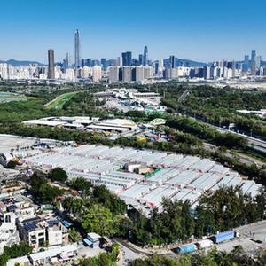 这是3月8日拍摄的香港新田方舱医院(无人机照片)。