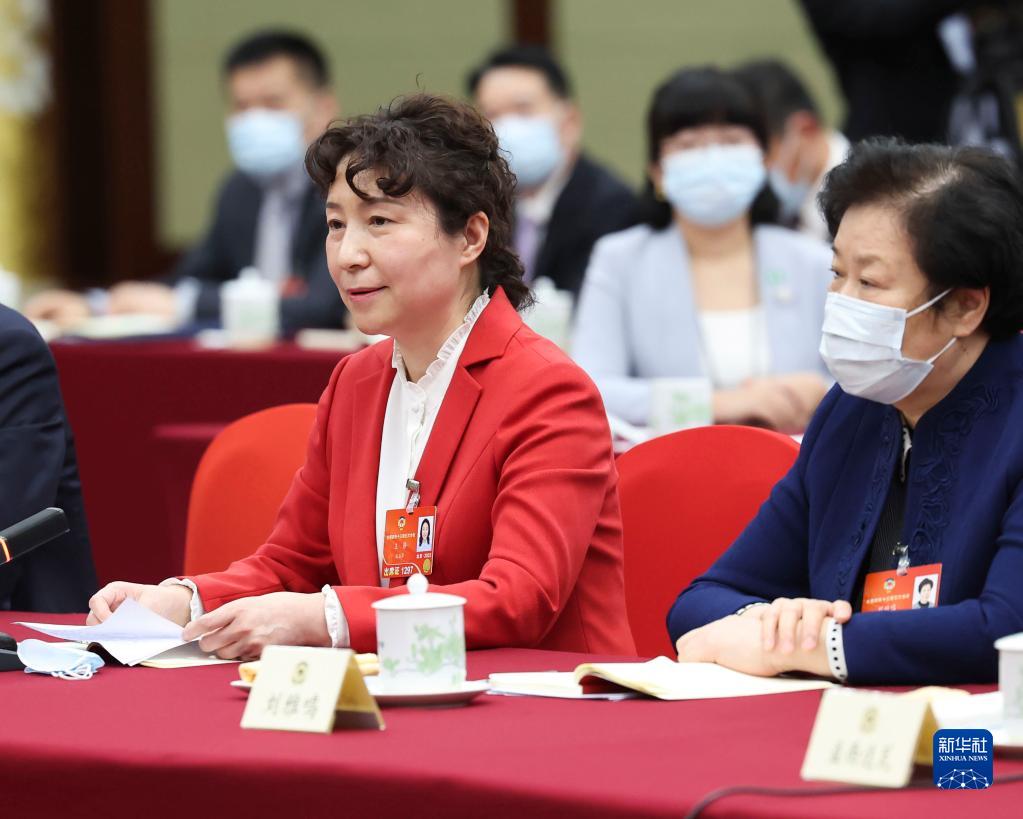全国政协委员王静(左)就筑牢农产品质量安全基石发言。