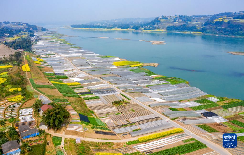 3月10日拍摄的四川省泸州市纳溪区大渡口镇光明村田园春色(无人机照片)。