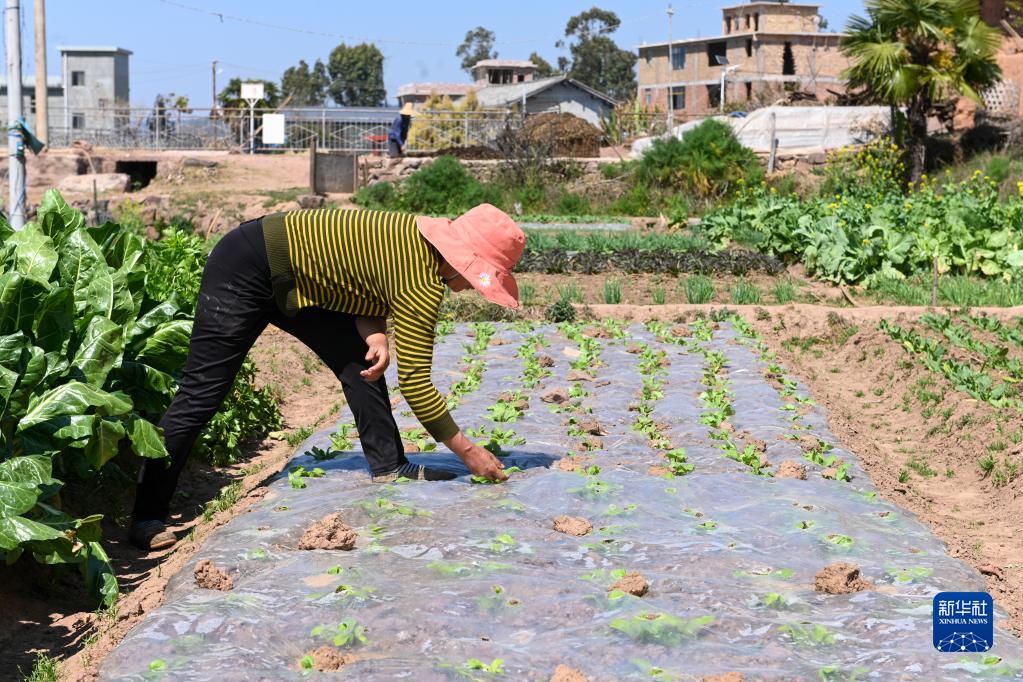 3月11日,云南省楚雄彝族自治州楚雄市大保山村农民在田间劳作。