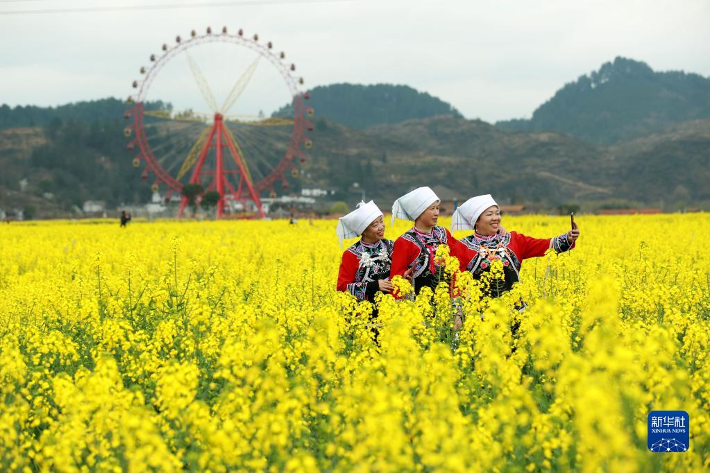 近年来,贵州省黔南布依族苗族自治州贵定县大力推进美丽乡村建设,以村居环境升级改造为主题,打造特色旅游村寨;同时,全县种植油菜9.5万亩,形成以“赏花经济”为特色的农旅结合产业,吸引众多游客前来赏花观光,带动乡村旅游,推进乡村振兴。