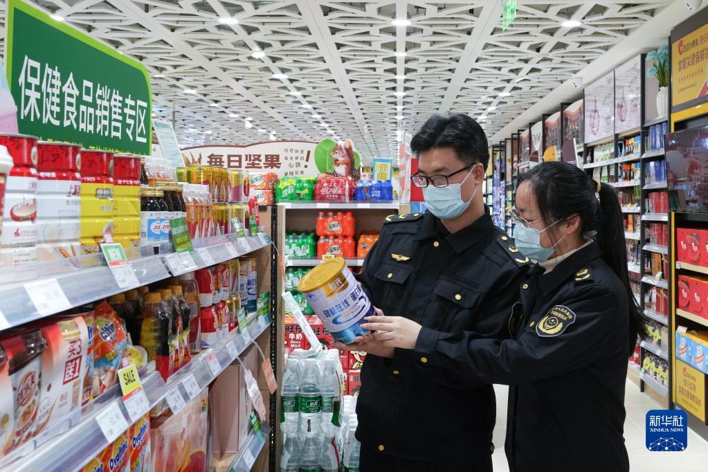 3月11日,在合肥市一家超市内,市场监管所工作人员对超市内商品随机抽检。